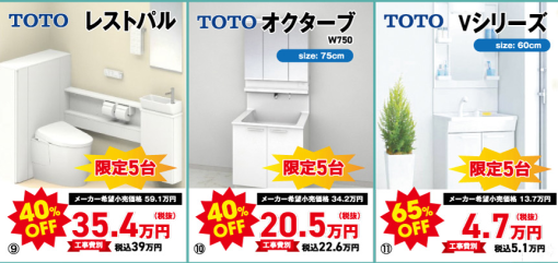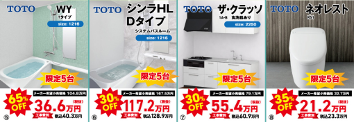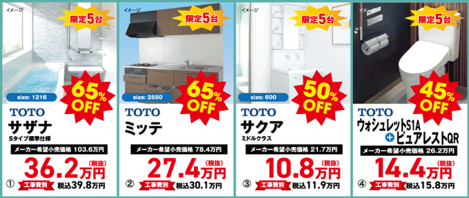 水廻り4点を同時購入の場合割引後、